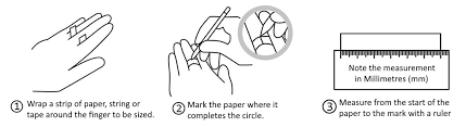 Take a piece of string or a strip of paper. Wrap it around the base of your finger (not too tight, not too loose).